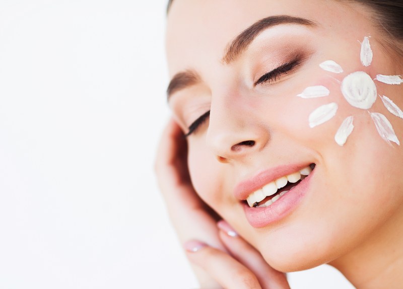 สิ่งที่จะเพิ่มเข้ามาสำหรับการบำรุงผิวตอนกลางวัน คือ การทาครีมกันแดด เพื่อปกป้องรังสี UV ที่จะเข้ามาทำลายผิวโดยตรง ถึงแม้ว่าครีมบำรุงผิวตอนกลางวันของเราบางตัวอาจจะมีส่วนผสมของกัดแดดอยู่บ้าง แต่ก็ไม่มากพอสำหรับการป้องกันแสงแดดตลอดทั้งวัน เราจึงต้องทากันแดดจริง ๆ ทับอีกที แล้วค่อยเริ่มต้นแต่งหน้า